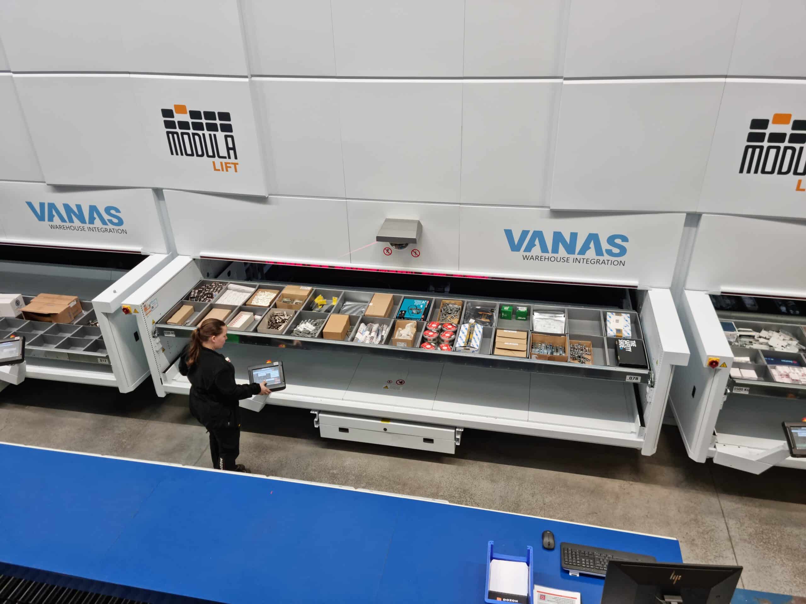 Als partner van Modula biedt Vanas geavanceerde verticale opslagsystemen die maximale ruimtebenutting combineren met ergonomische en efficiënte orderpicking.